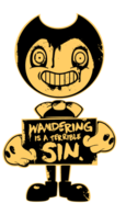 Ini adalah Telur Paskah yang hanya bisa Anda dapatkan dengan meretas melalui dinding yang menarik (Exit Door, Infirmary Door, dll). Ini menunjukkan guntingan Bendy memegang tanda dan mata yang sangat menyeramkan. Tanda itu bertuliskan "Mengembara adalah Dosa yang Mengerikan".